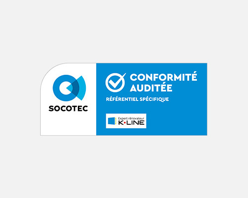 Depuis Juillet 2018, nous sommes titulaires du label "Conformité Autitée SOCOTEC" Expert rénovateur K•LINE