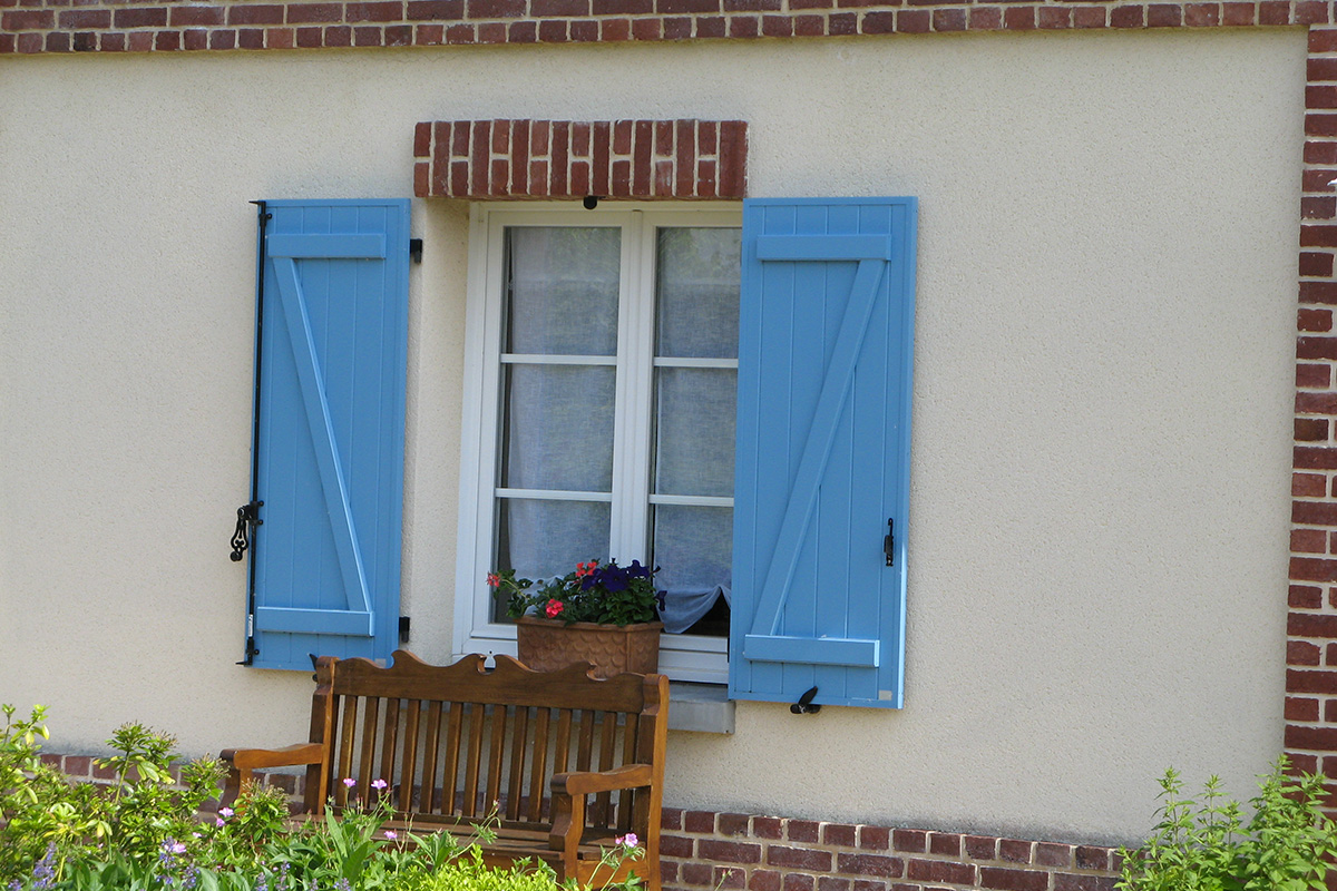 ■ Dans l'achitecture Française, les volets battants font partie de l'esthétique traditionnelle. Ils sont d'une utilisation facile. C’est un système très simple de panneaux qui se replient devant la fenêtre au nu extérieur de la façade et se verrouillent au milieu par espagnolette et crochets.